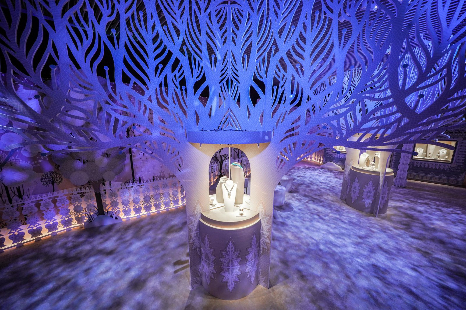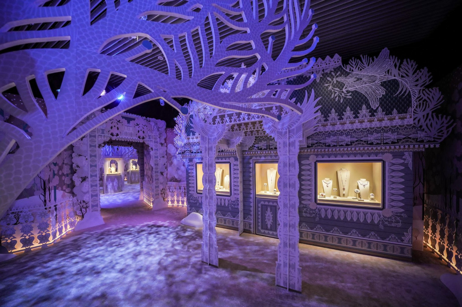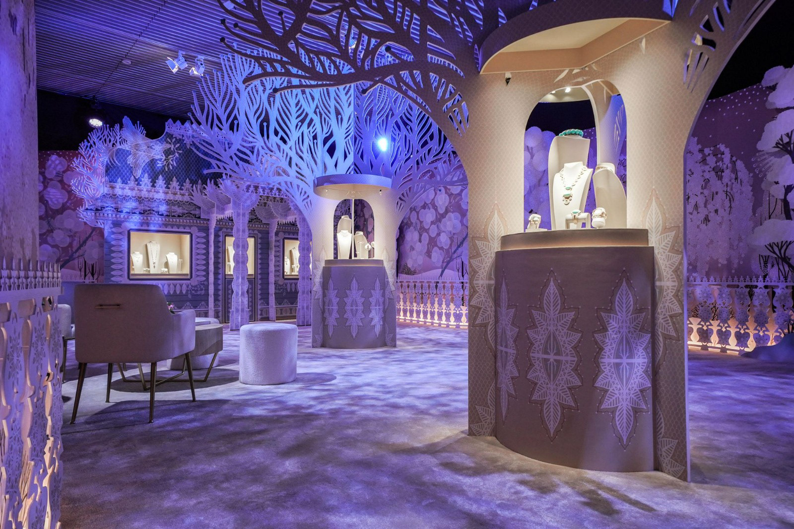 Et l'aménagement des salons de vente avec de multiples éléments de décor en découpe :