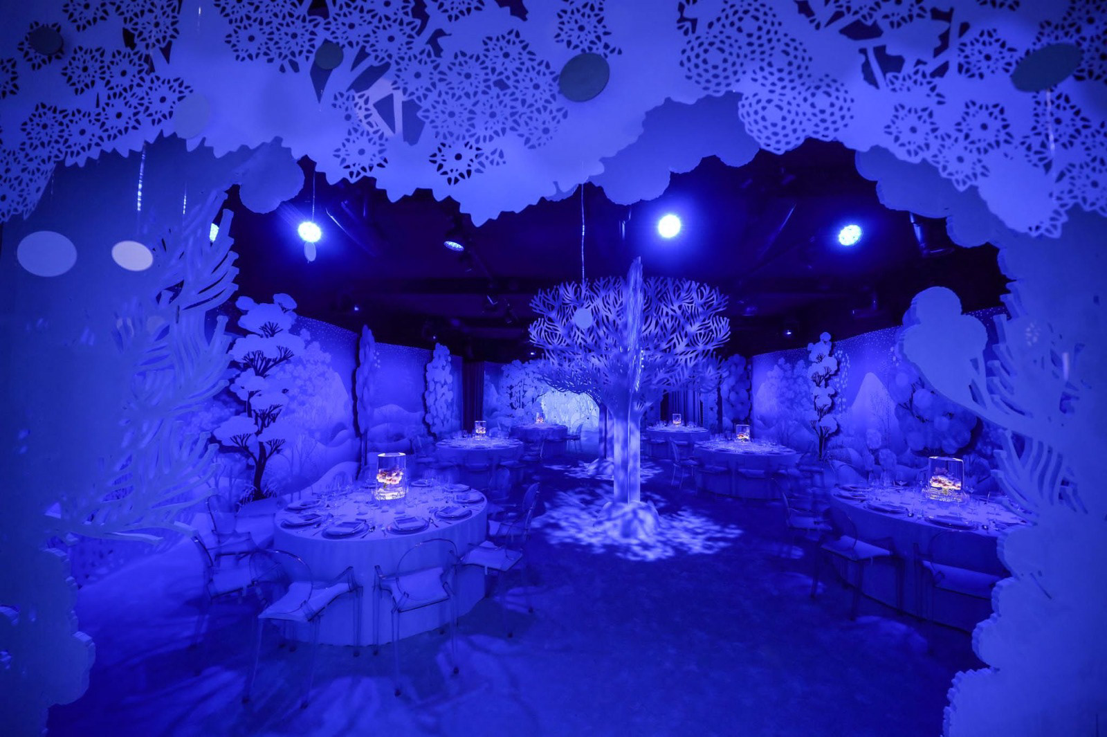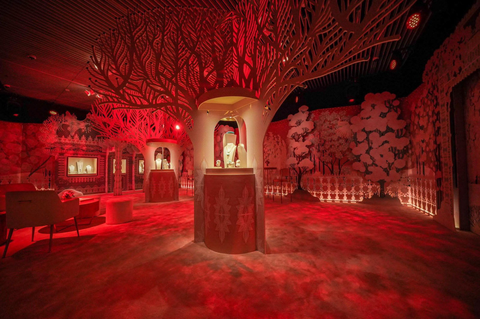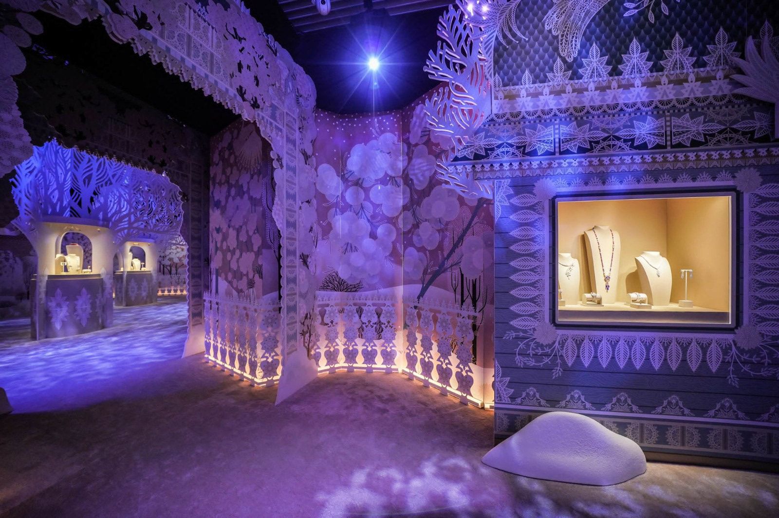 Et l'aménagement des salons de vente avec de multiples éléments de décor en découpe :