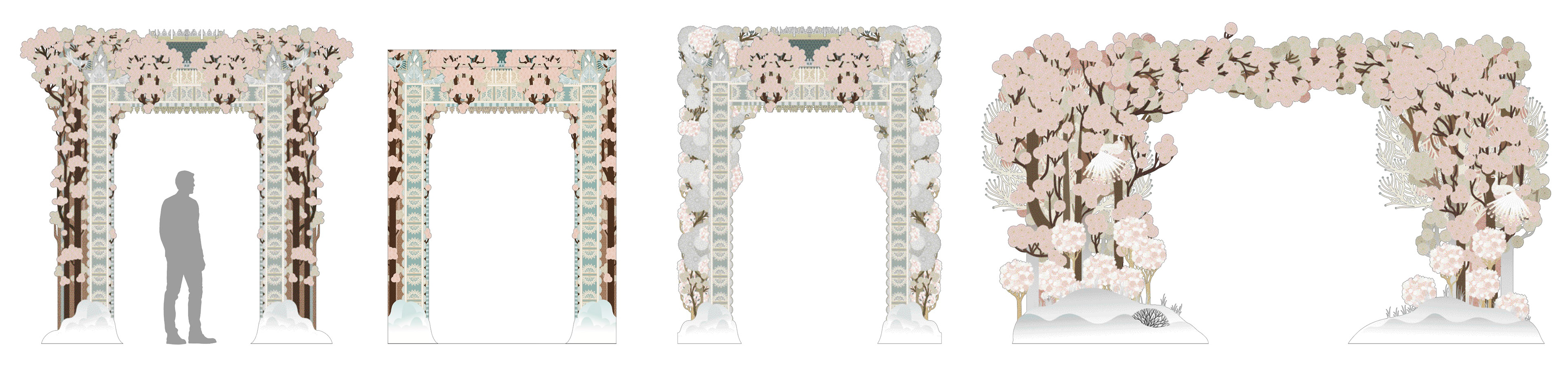 Il a fallu mettre à l'échelle du lieu – et parfois légèrement reprendre le design – les portes, arches et théâtre :